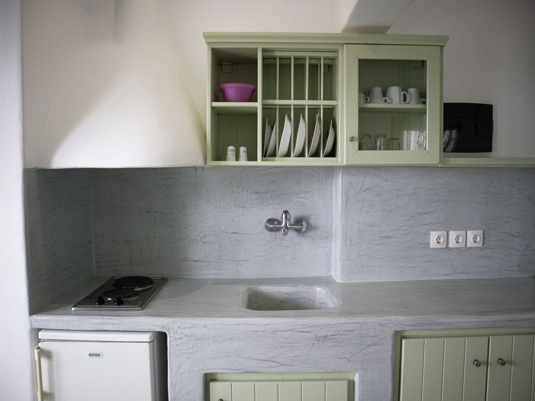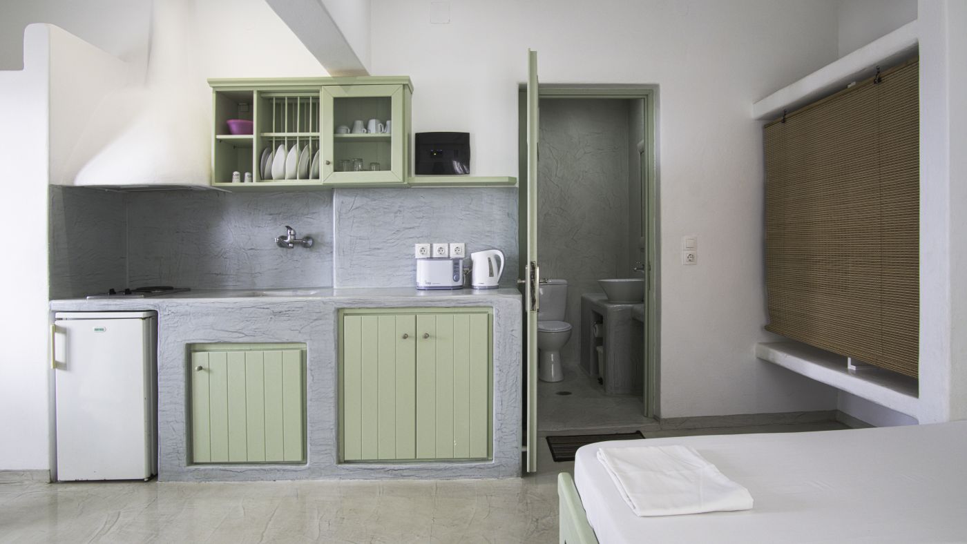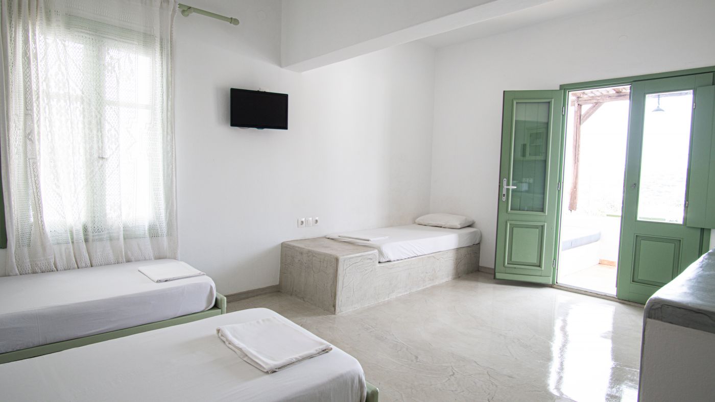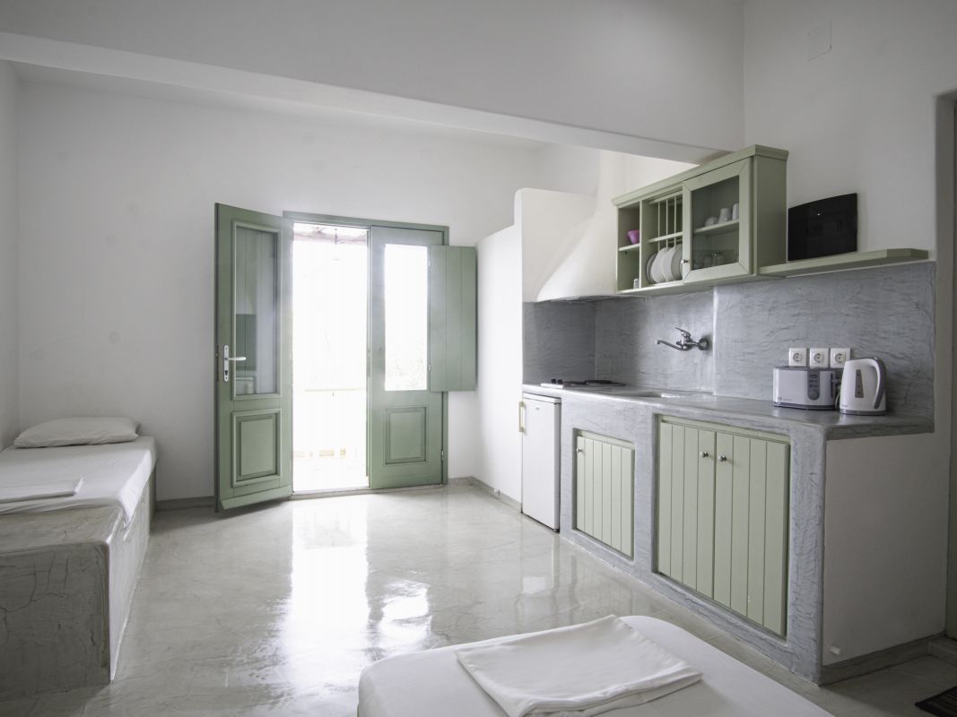 Amazing tripple room with 3 single beds that can accommodate up to 3 adults or up to 1 adult and 2 children. The studio has a garden view and is fully equipped. You can cook, make coffee or tea and make a toast.